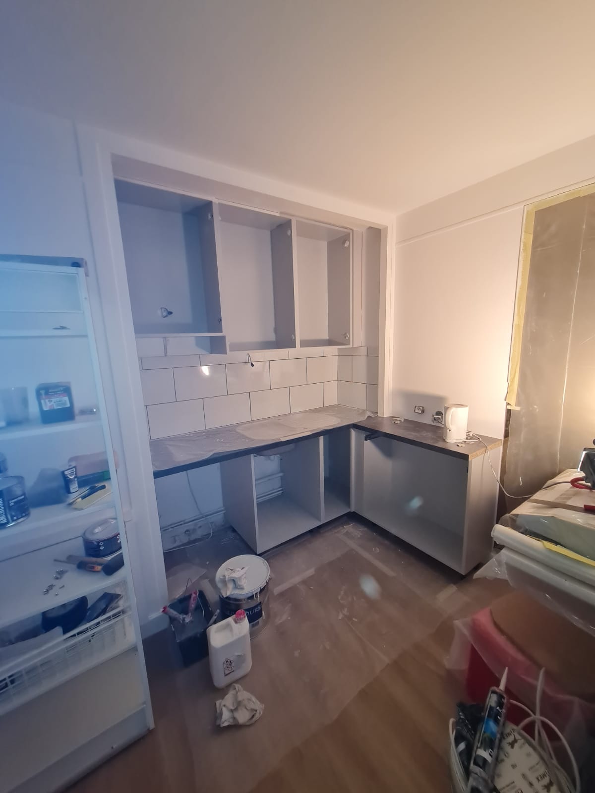 Remplacement plan de travail et coffrage chauffe-eau avec peinture a Paris 75015 budget 1600€.
