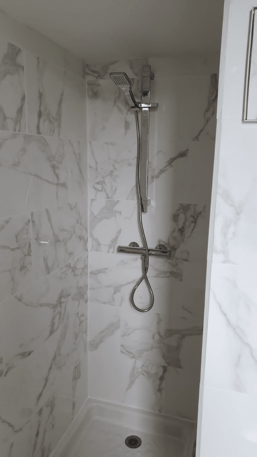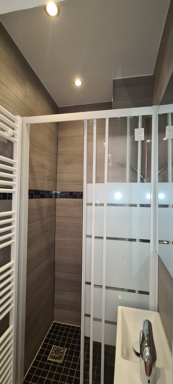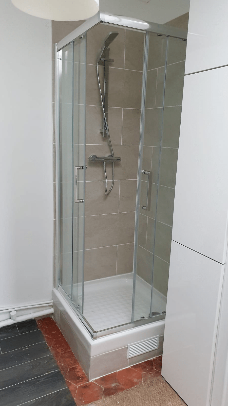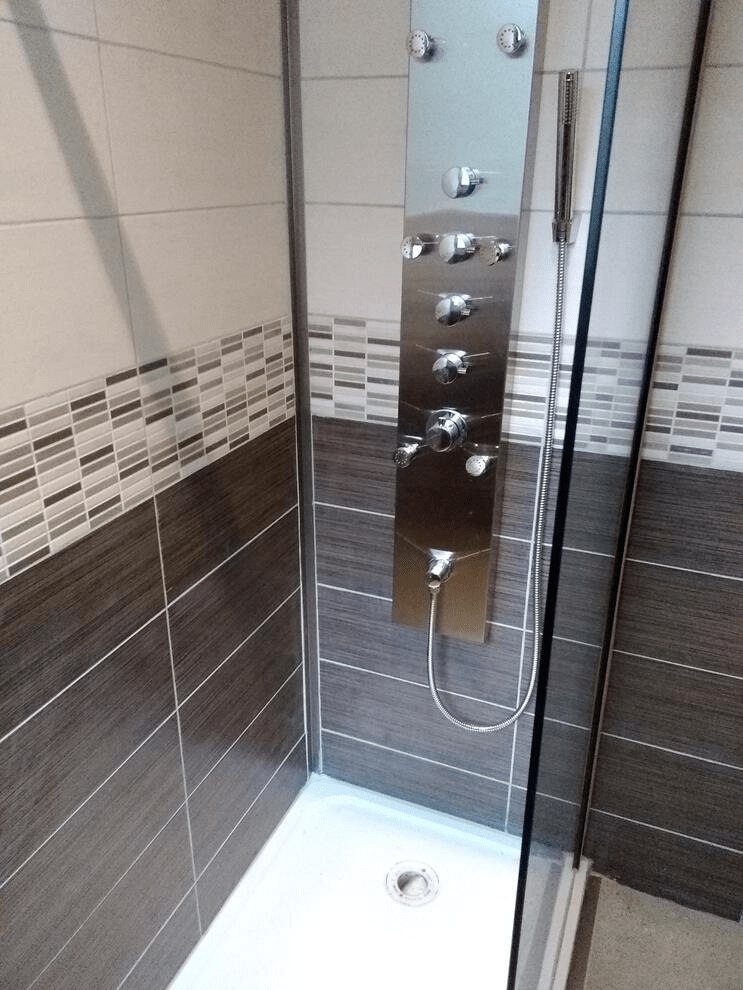 Receveur de douche , faïence , porte de douche et colonne à jets à Paris 75006 , budget 5200€.