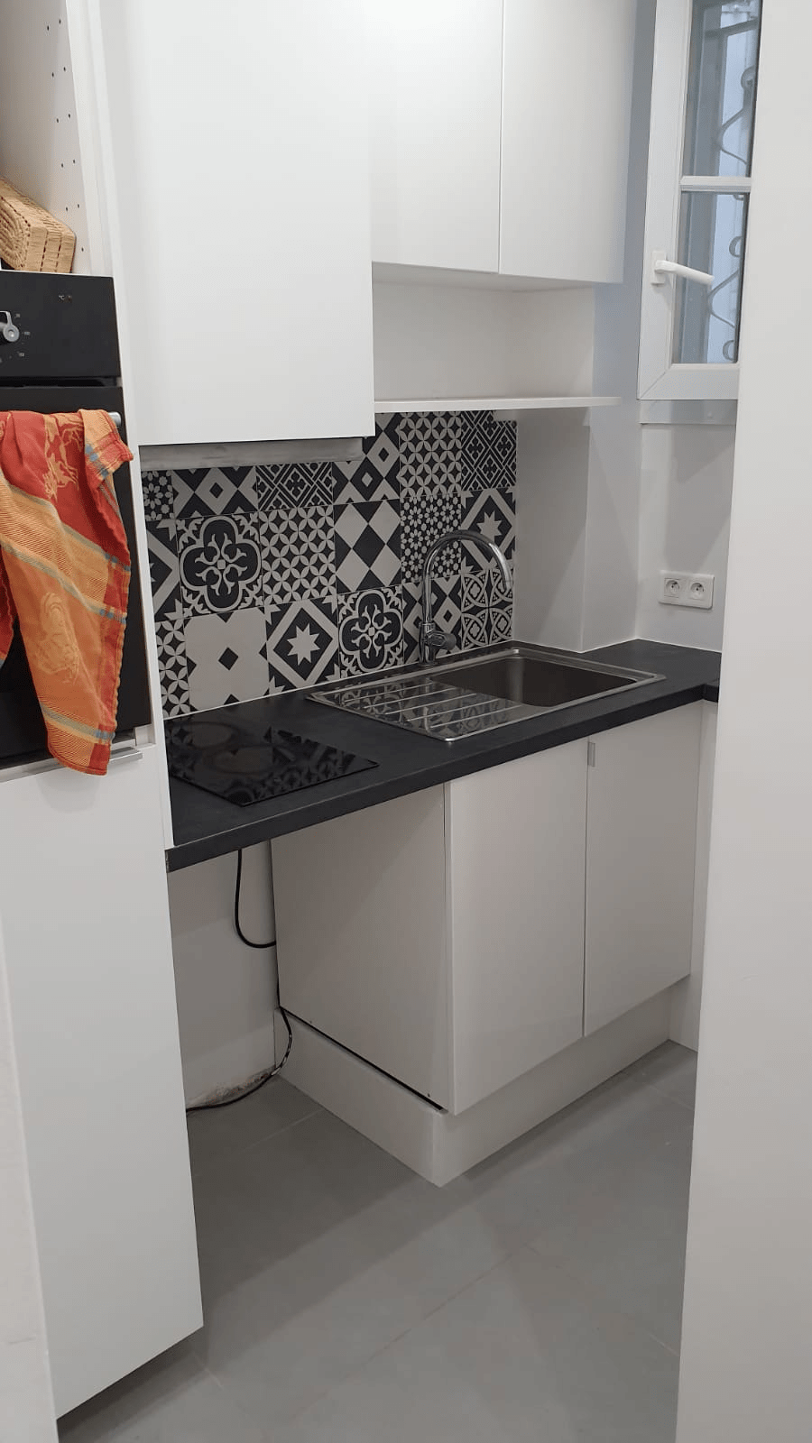 Kitchenette , plan de travail , évier , mitigeur et plaque électrique à 92240 Malakoff Budget 1200€.