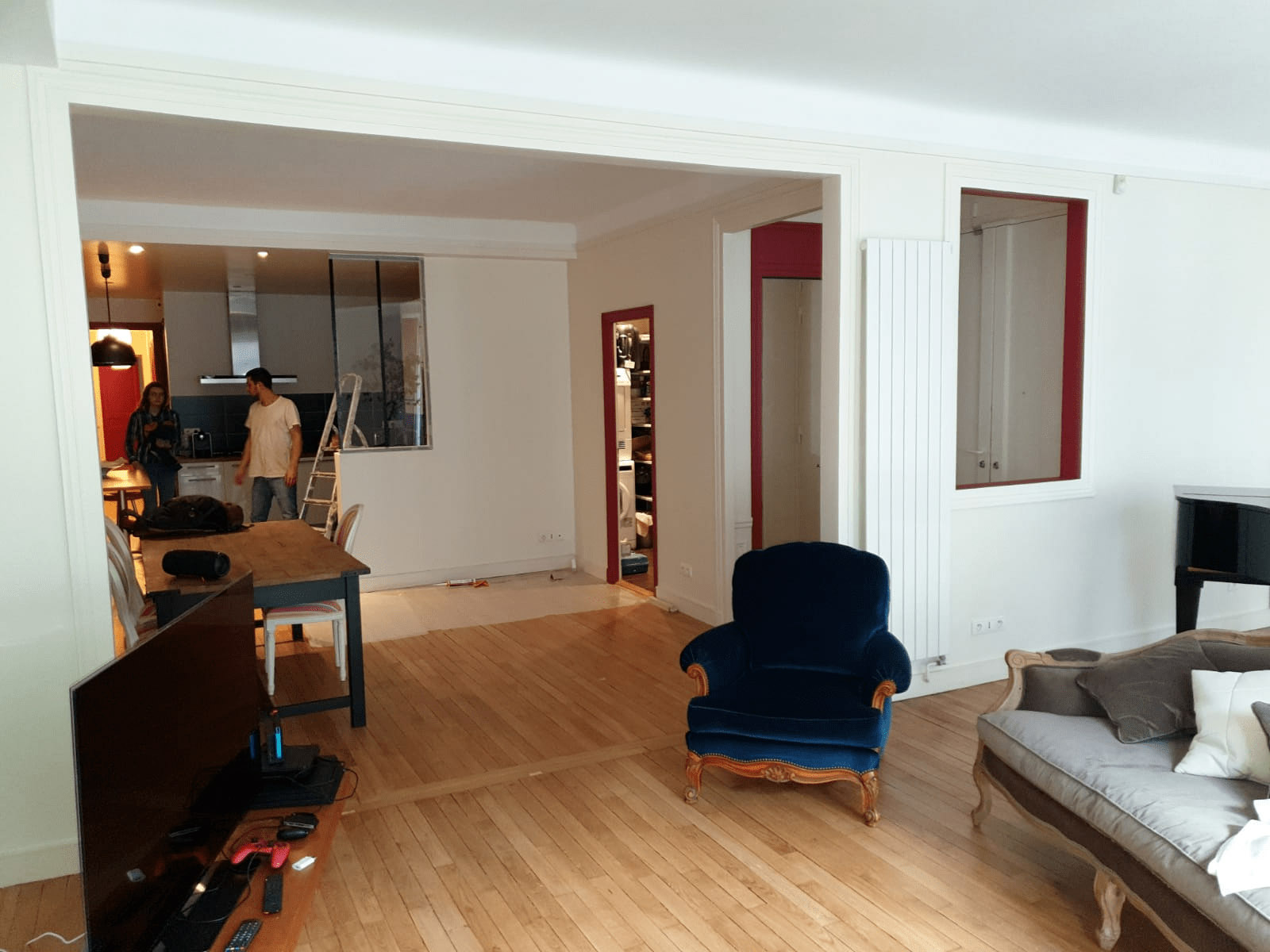Enduit partiel, peinture, murs, plafond, radiateurs, portes , plinthes, à Paris 15eme, budget 7000€.