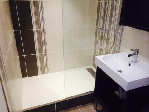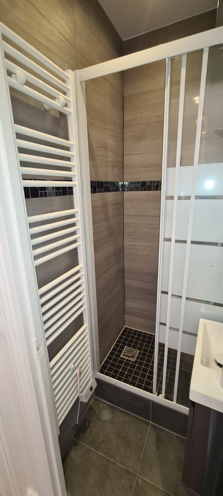 Rénovation complète , bac a douche , prote de douche , carrelage , faïence , meuble lavabo et peinture à Paris 75016 , budget 5000€.