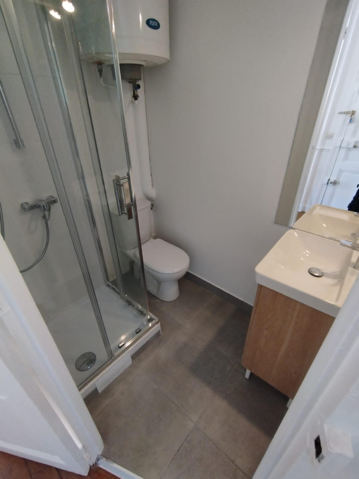 Rénovation complète , douche , meuble haut , lavabo , peinture , électricité , carrelage sol , faïence à Paris 75005 , budget 10000€.