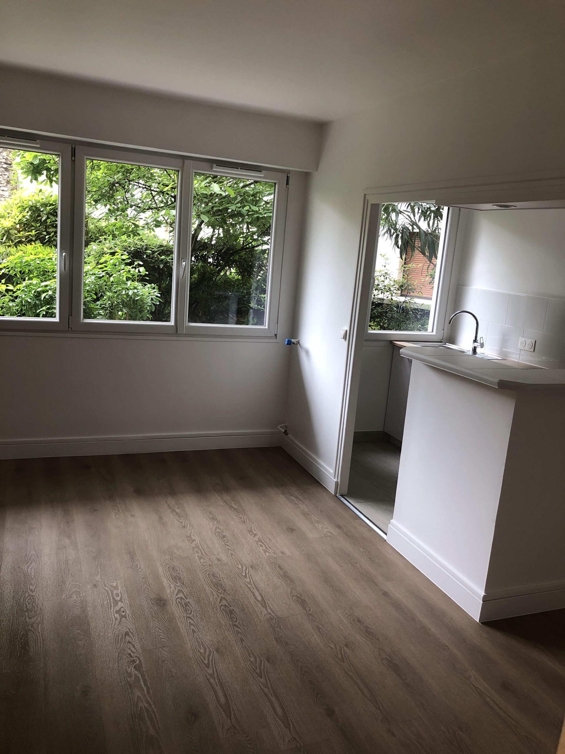Protections , enduit partiel et peinture au pistolet , entrée , séjour/chambre , salle de bain et cuisine à Paris 15ème budget 3.300€.