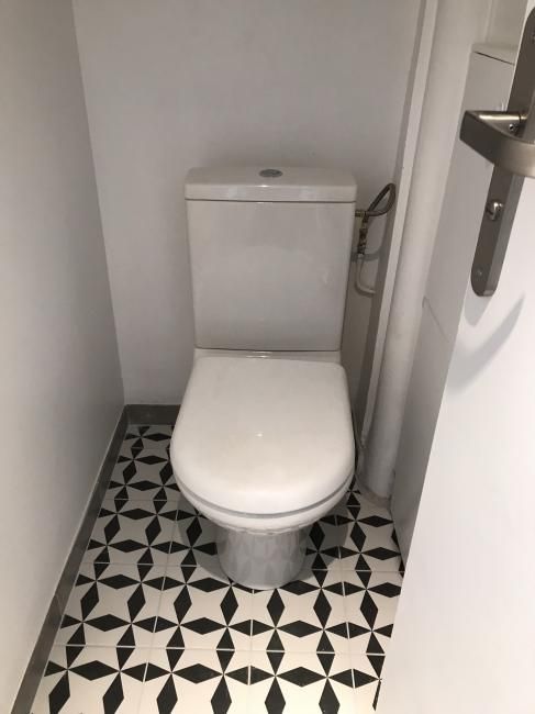 Entoilage appartement 60m², enduit ,peinture , dalles PVC 45m² , démolition et création cloison mur cuisine , faïence murs toilettes et WC , pose WC , Paris 75015 , Budget 28000€.
